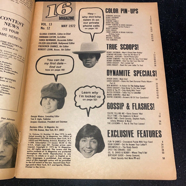 16 Magazine May 1972 Donny Osmond Michael Jermaine Jackson Complete Pinups
