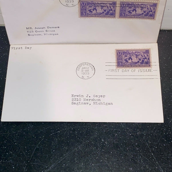 Baseball Centennial FDC Lot of 2 1939 Cooperstown Postal Covers Stamps Scott 855
