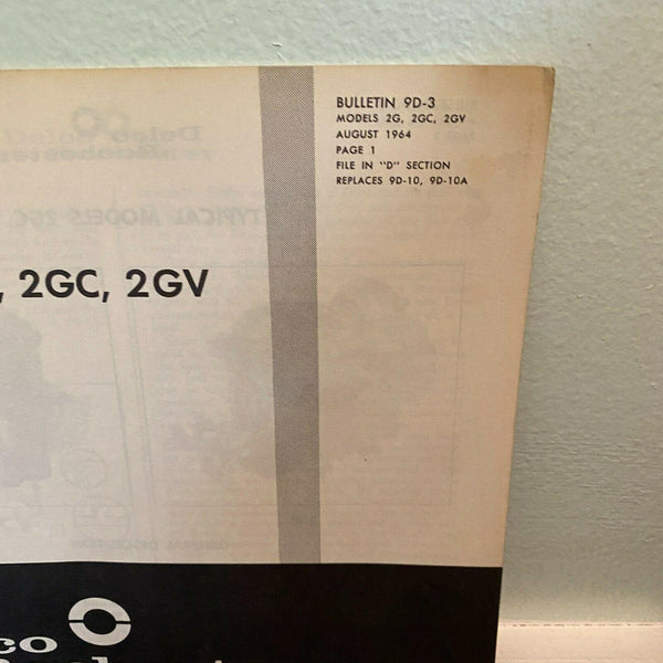 Delco Rochester 2G 2GC 2GV Carburetor 1964 Service Manual Bulletin 9D-3