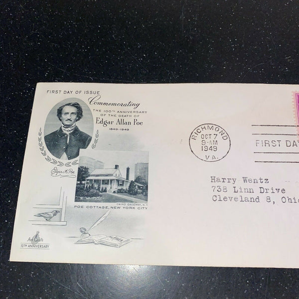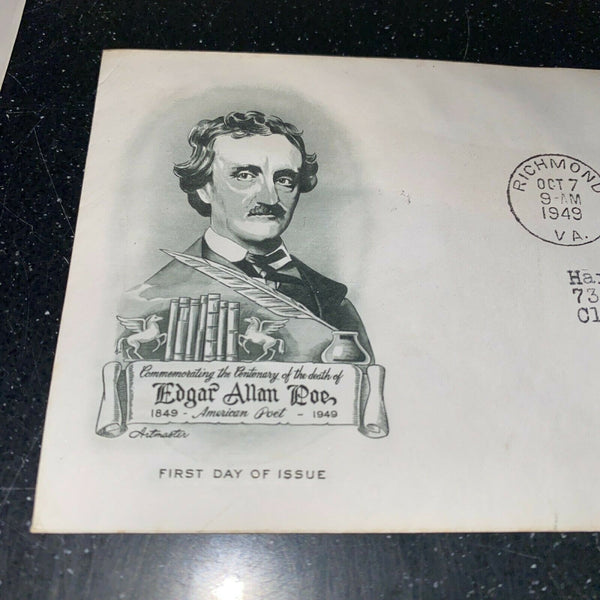 Edgar Allen Poe FDC Lot of 4 1949 Cachet Postal Covers Stamps Scott 986