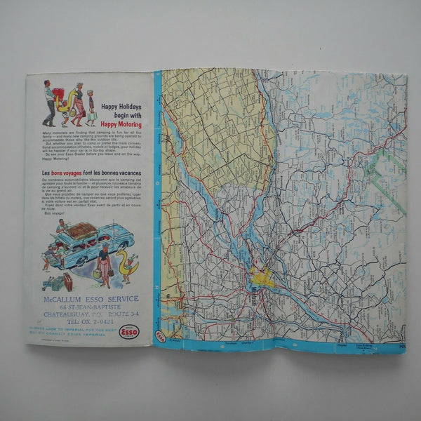 Esso Quebec Map Travel Vintage Advertising 1961 Road McCallum Chateauguay