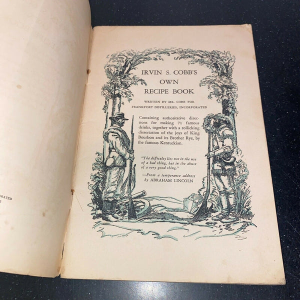 Irvin S Cobbs Own Recipe Book Bourbon Cocktails 1936 Frankfort Distilleries