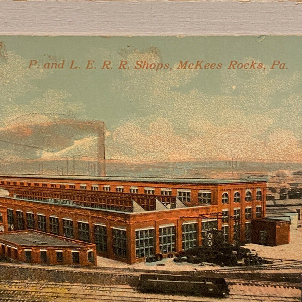 P and LERR Shops Postcard Vtg 1913 McKees Rocks Pittsburgh Lake Erie Railroad