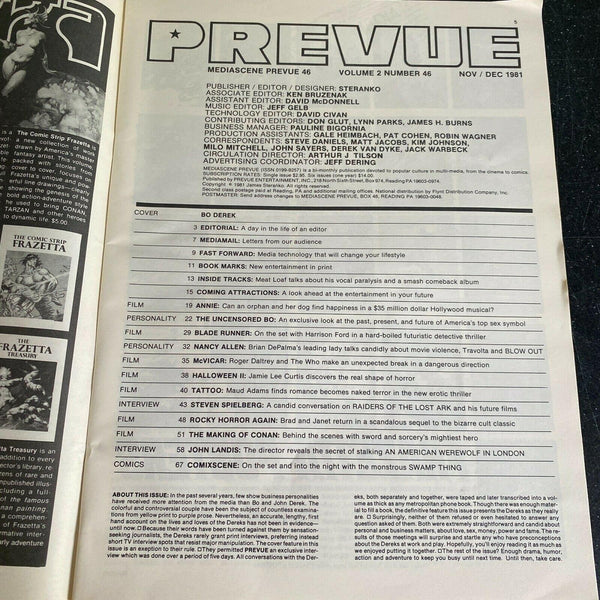 Prevue November December 1981 magazine Bo Derek Harrison Ford Conan