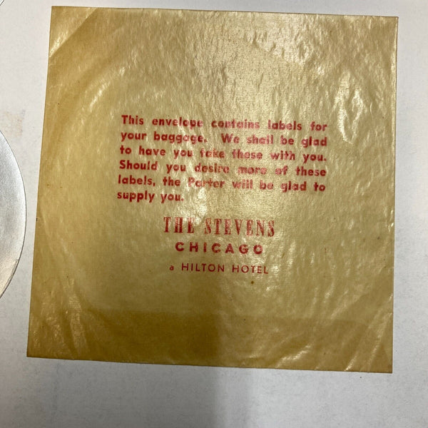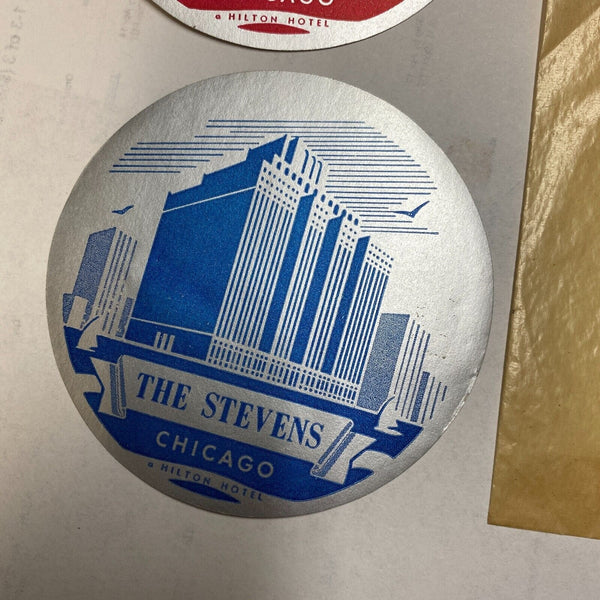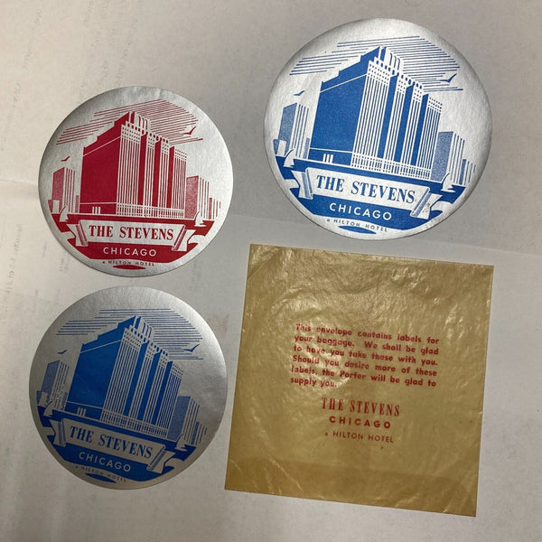 Stevens Hotel Baggage 3 Label Set NOS Vintage 1940s Luggage Stickers + Envelope