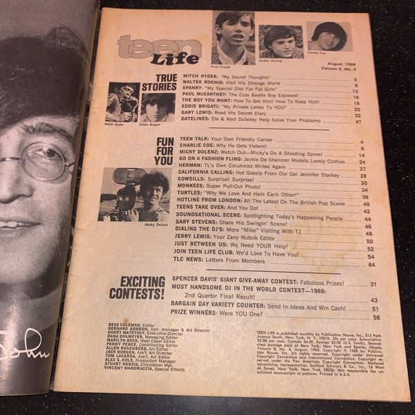 Teen Life Magazine August 1968 Monkees John Lennon Turtles Complete Pinups