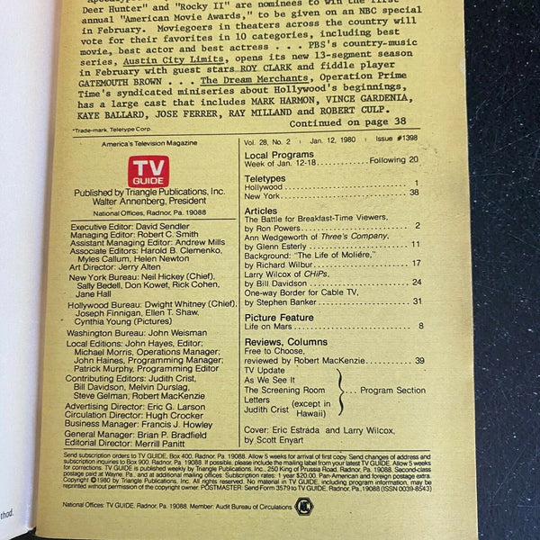 TV Guide January 12-18 1980 magazine CHIPs Erik Estrada Larry Wilcox