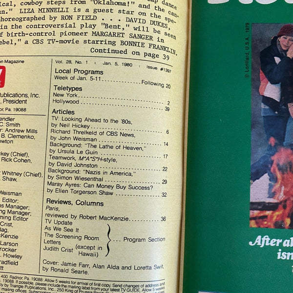 TV Guide January 5 1980 MASH Jamie Farr Alan Alda Loretta Switt Ursula Le Guin