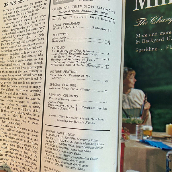 TV Guide July 1-7 1967 magazine David Brinkley Chet Huntley Steve Allen