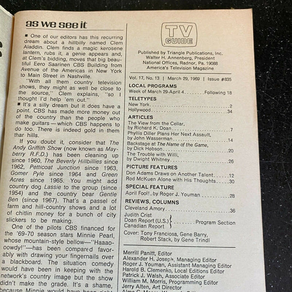 TV Guide March 29 1969 Name of the Game Robert Stark Gene Barry Tony Franciosa
