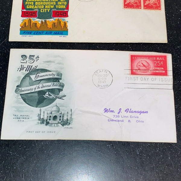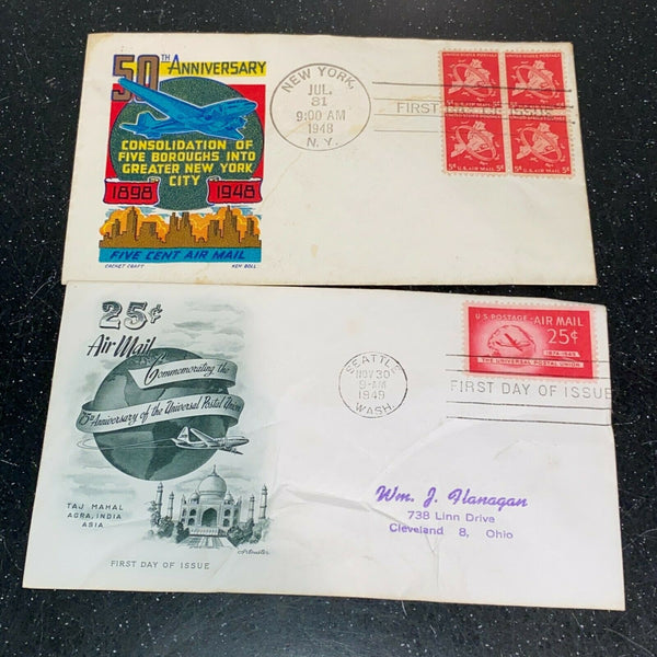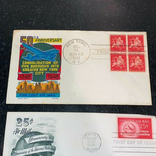 U.S. Air Mail FDC Cachet Lot of 2 1948 1949 Postal Covers Stamps Scott C38 C44